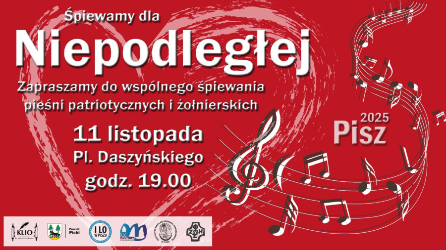 Zaproszeni są wszyscy — starsi i młodsi, całe rodziny, grupy przyjaciół i ci, którzy po prostu chcą być razem w ten szczególny wieczór. Nie potrzeba ani mikrofonu, ani sceny — wystarczy serce i chęć wspólnego śpiewania. Jeśli pogoda okaże się kapryśna, spotkanie zostanie przeniesione do gościnnej auli Starego Ogólniaka, gdzie równie dobrze zabrzmią dźwięki naszych najpiękniejszych pieśni narodowych.