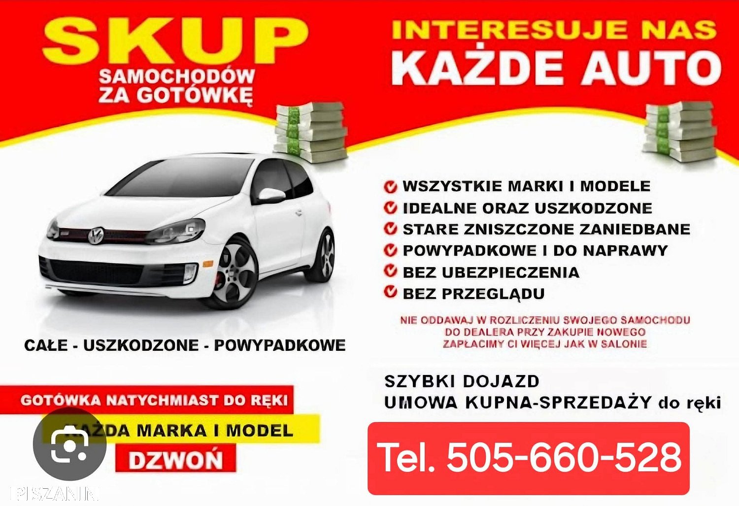 Umowa i gotówka na miejscu od ręki!