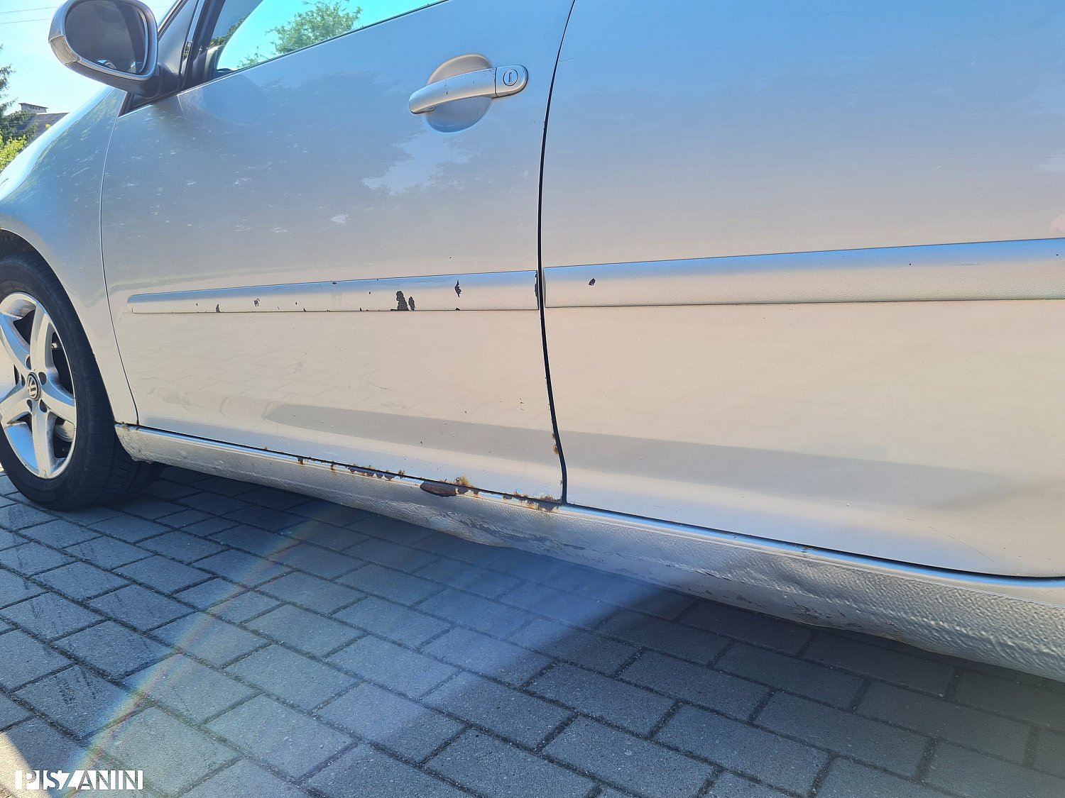 Na sprzedaż Volkswagen Golf V z 2005 roku z silnikiem diesel 1.9 TDI o mocy 140 KM – jednostka bardzo dynamiczna i oszczędna ( spalanie nawet poniżej 5l/100km. Auto posiadam od 4 lat. Samochód jest wyposażony m.in. w nawigację, klimatyzację, ISOFIX, pokrowce na fotele i kierownicę, kierunkowskazy w lusterkach oraz hak holowniczy wbity w dowód rejestracyjny. W 2023 roku wykonano kompleksowy serwis podwozia na kwotę około 12 000 zł. W 2025 roku wymieniono opornicę nawiewu, wentylator nawiewu, stacyjkę oraz zamek klapy bagażnika. Auto stoi na oponach zimowych w rozmiarze R16. Pierwsza rejestracja w kraju miała miejsce w 2017 roku. Aktualnie samochód wymaga kilku napraw: do wymiany jest tylne łożysko (huczy), rozrząd, olej, oraz potrzebne są poprawki lakiernicze z uwagi na rdze,wgniotło i o rysowania, aczkolwiek podwozie jest bez dziur. Kilka dni temu przestało działać wspomaganie kierownicy – prawdopodobnie do sprawdzenia pompa lub maglownica. Auto odpala bez problemu w mrozy do -10°C, przy wyższych temperaturach czasami wymaga odpalenia na lejce. Przy rozruchu przez chwilę zakopci, po czym pracuje normalnie – tak było odkąd posiadam samochód. Auto bardzo dobrze się spisywało. Zdjęcia auta z października aczkolwiek nic się nie zmienilo. Przegląd techniczny ważny do 07.03.2026, polisa OC do 16.03.2026. Cena 5200 zl do negocjacji, jednak propozycje zaczynające się od „3 z przodu” z góry dziękuję. Tel 695118765.