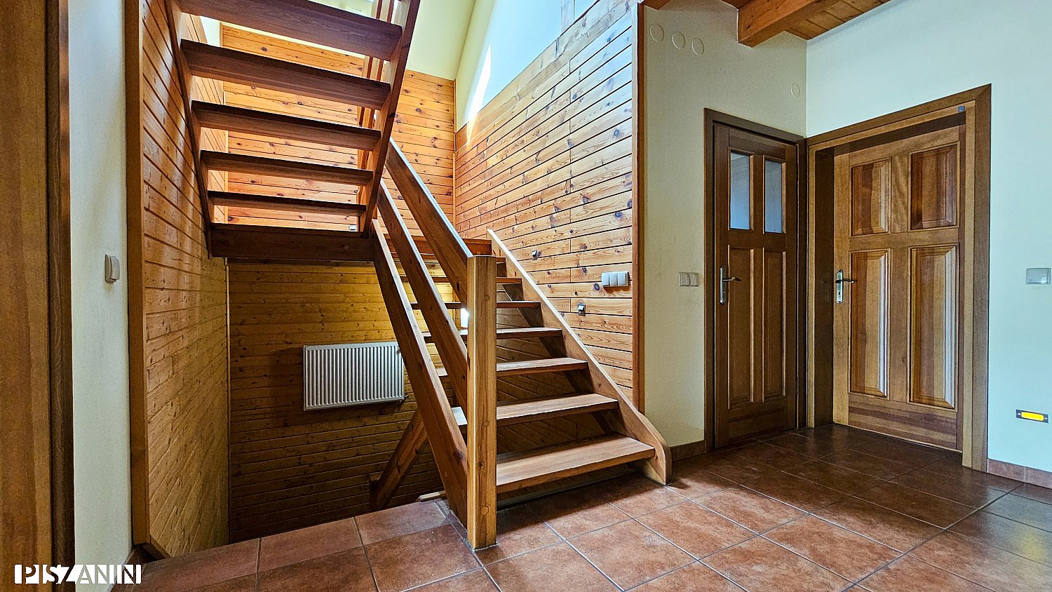 Ściany: tynk gipsowy, drewno, płyta karton-gips