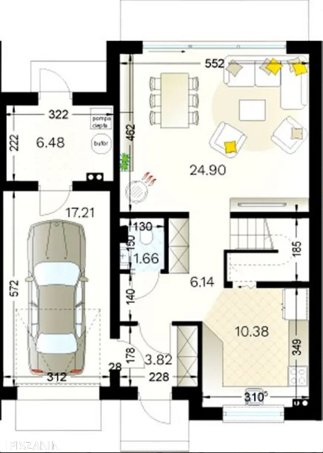 Powierzchnia użytkowa domu: 103 m² + garaż 18m².