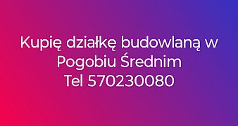 Promuj ogłoszenieKupię działkę budowlaną w Pogobiu Średnim ... czytaj więcej