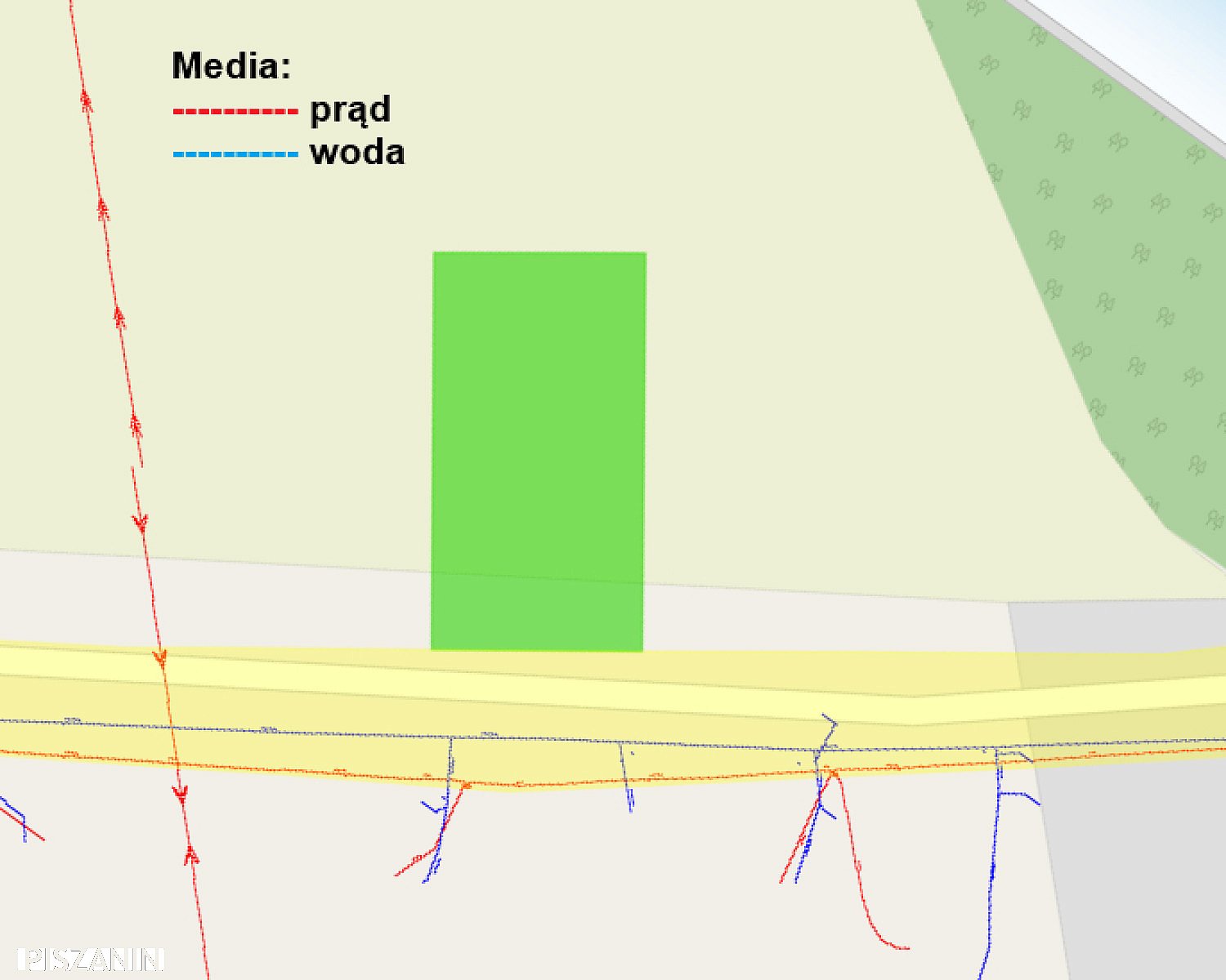 Wodociąg i sieć energetyczna przy działkach.