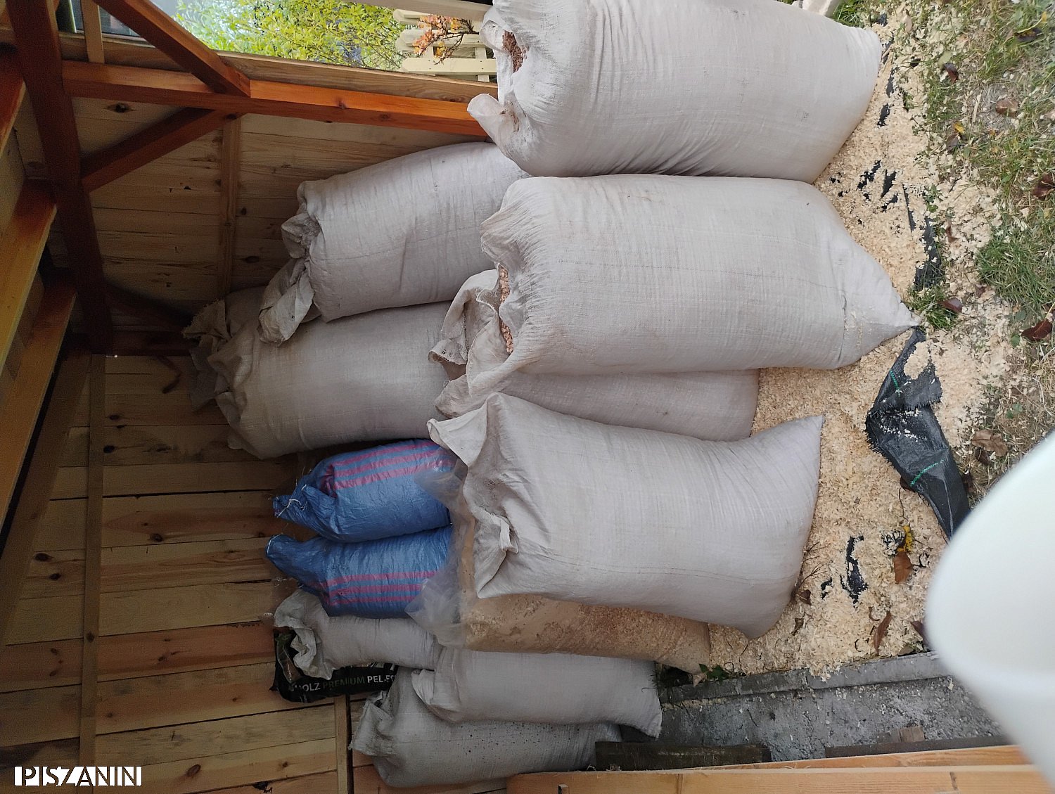 Oddam trociny widoczne na zdjęciu, suche z lepszą flaszkę . Trociny to przeważnie sosna świerk i jesion. Teraz aktualnie wyniesione zostały z braku miejsca w warsztacie. Widoczne na zdjęciu i wciąż ich przybywa
