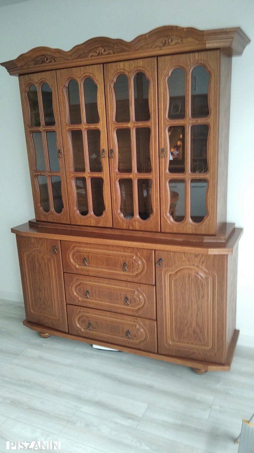 Na sprzedaż oferuję solidną, drewnianą komodę z górną witryną, idealną do salonu, jadalni lub pokoju dziennego. Mebel jest w stylu klasycznym, wykonany z dużą dbałością o detale.