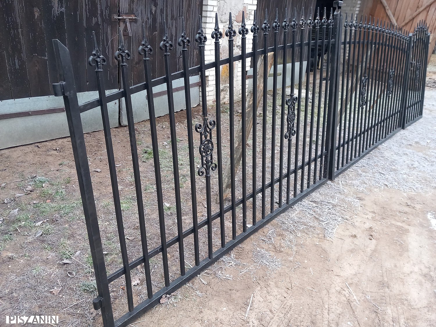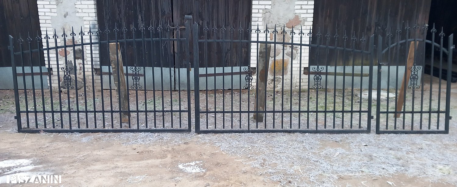 Brama dwuskrzydłowa 5m szerokość 1,40m-1,60m wysokość, Furtka 1m szerokość 1,40m -1,60m wysokość, 3 słupy z zawiasami, Wykonana z grubego materiału. Cena zestawu 2000zł