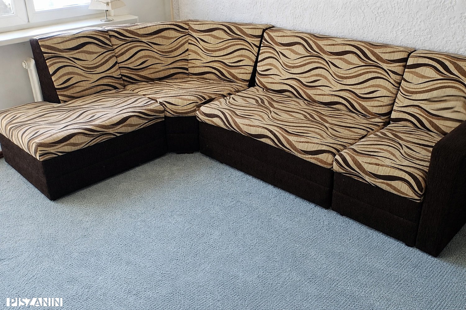 Narożnik modułowy o wymiarach 270x190cm Rozkładany (mogą spać 2 osoby) można z niego zrobić dużą kanapę zamieniając moduły. Stan: jak nowy. Praktycznie nieużywany. W domu nie było nigdy zwierząt, ani nie było palone. Nowy kosztował 2000zl