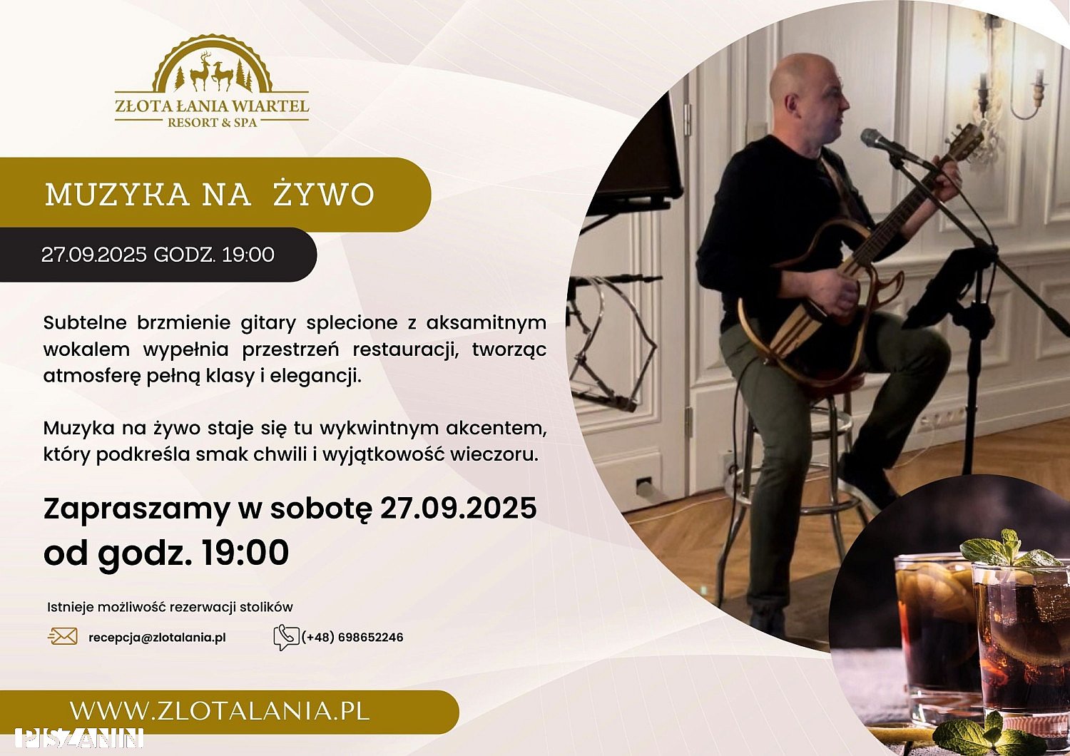 Muzyka na żywo 27 września 2025 Złota Łania Resort &SPA