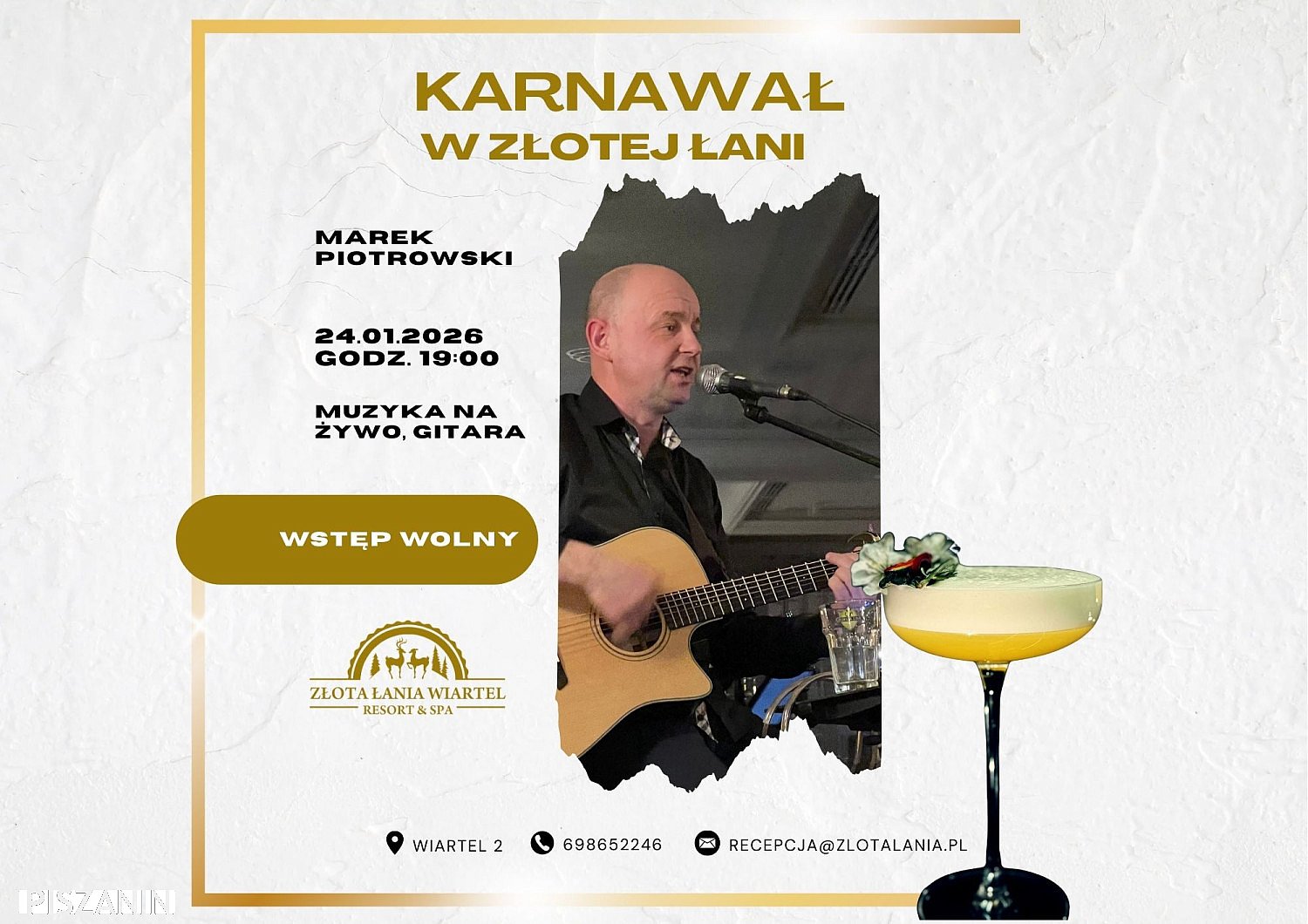 To propozycja dla wszystkich, którzy chcą spędzić wieczór przy dobrej muzyce, w przyjaznej atmosferze i eleganckim wnętrzu Złotej Łani. Kameralne spotkanie, muzyka na żywo i odrobina karnawałowego luzu – idealny plan na zimowy wieczór.