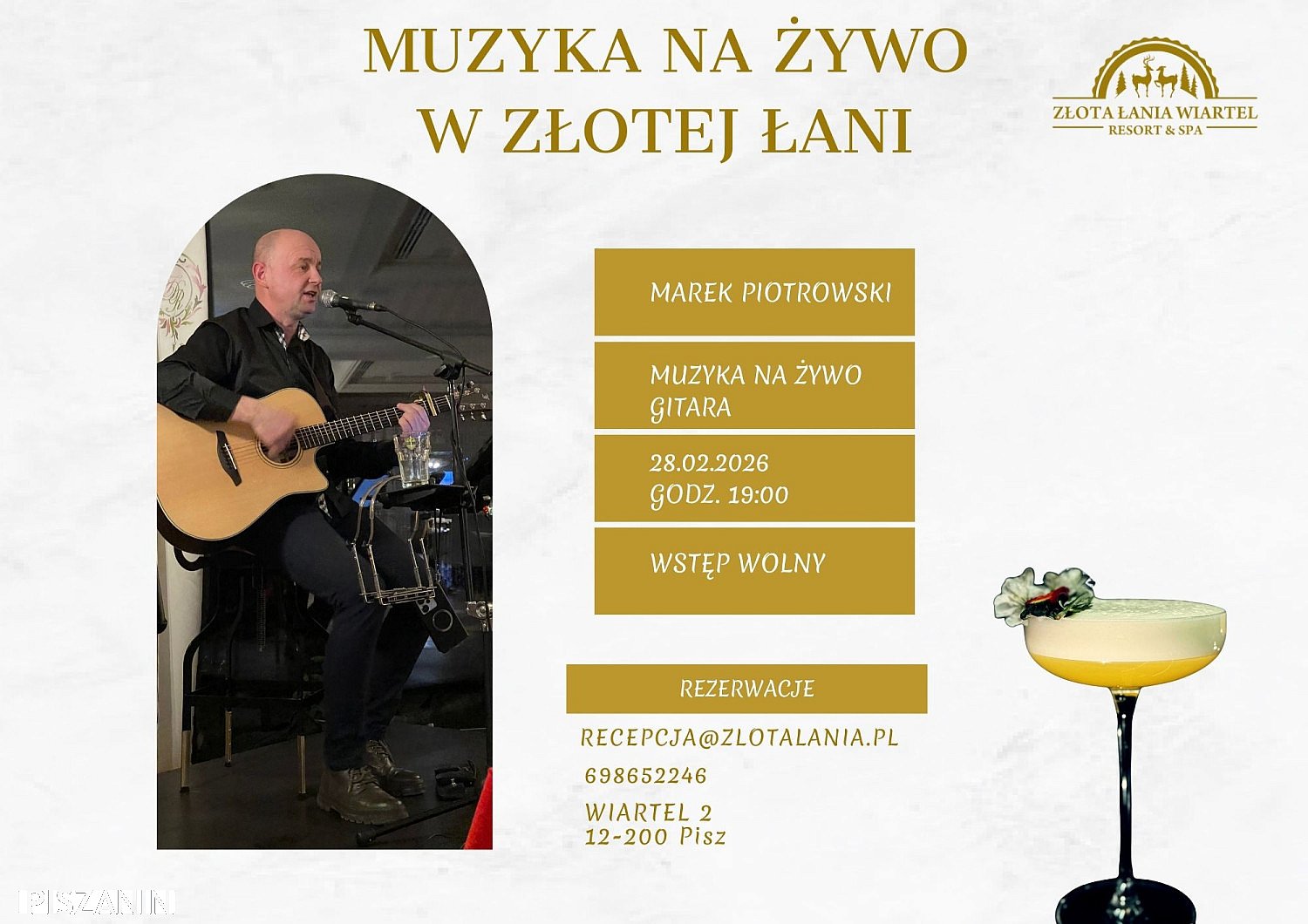Zapraszamy na wyjątkowy wieczór z muzyką na żywo w klimatycznym wnętrzu Złotej Łani w Wiartlu!