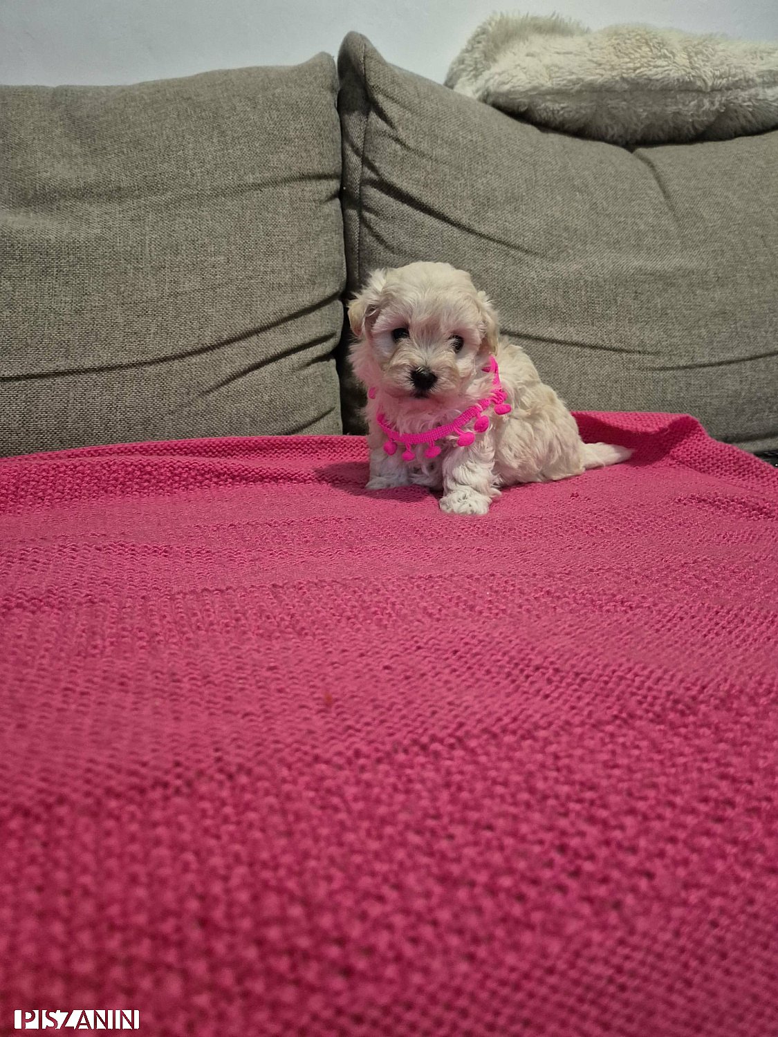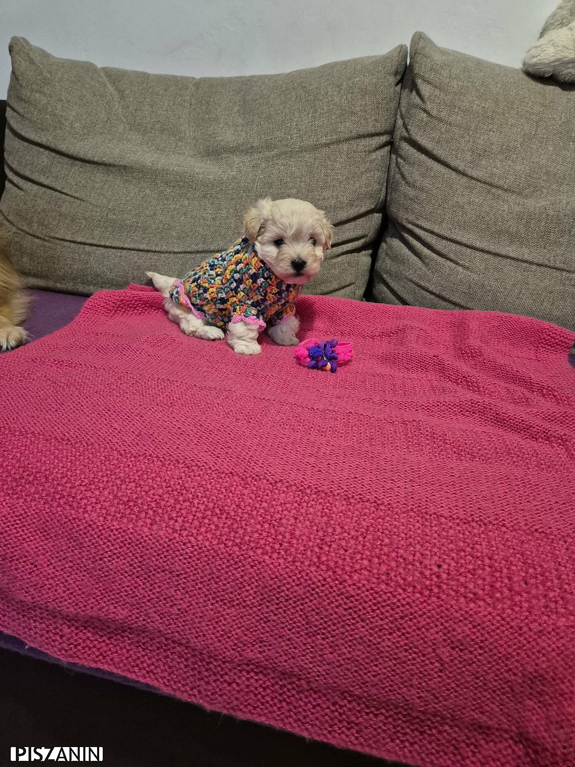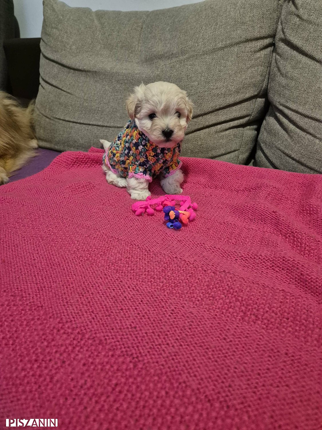 Szczenię dostanie również karmę na start, maty i kocyk.