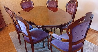 Promuj ogłoszenieSprzedam stół włoski dł 173cm szer 103 cm wys 75 cm + 6 krzesł w tym. 2 z oparciem tapicerka ... czytaj więcej